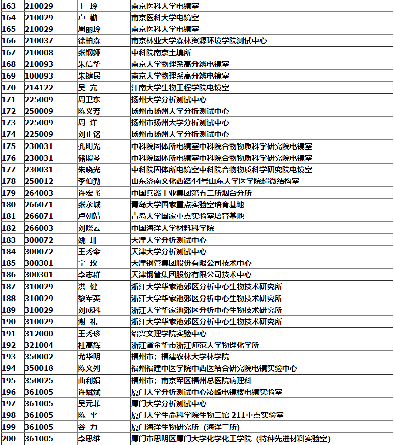 銀川市2008年中國電子顯微鏡學會會議名單